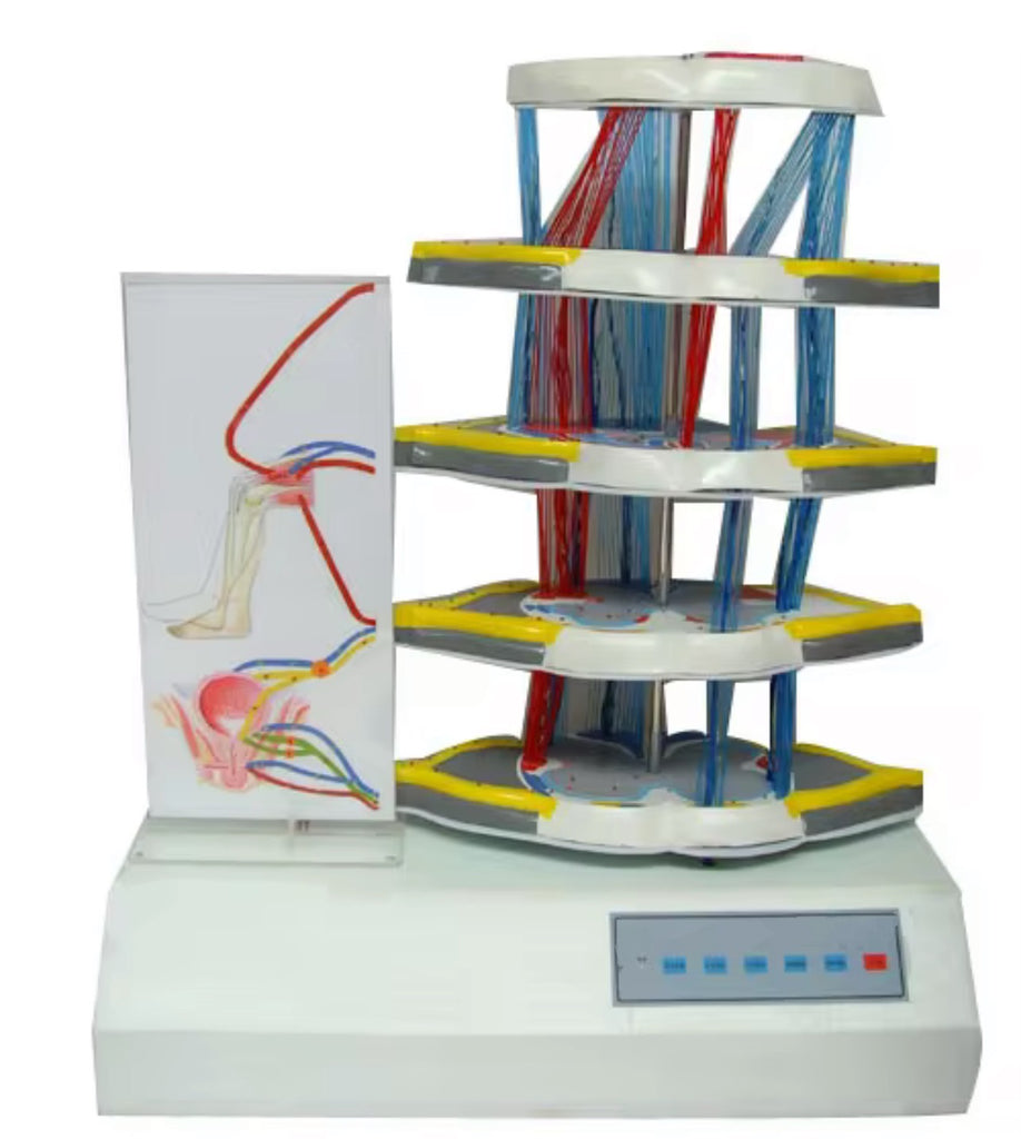 Muestra la estructura interna de la médula espinal y sus fibras ascendentes y descendentes.