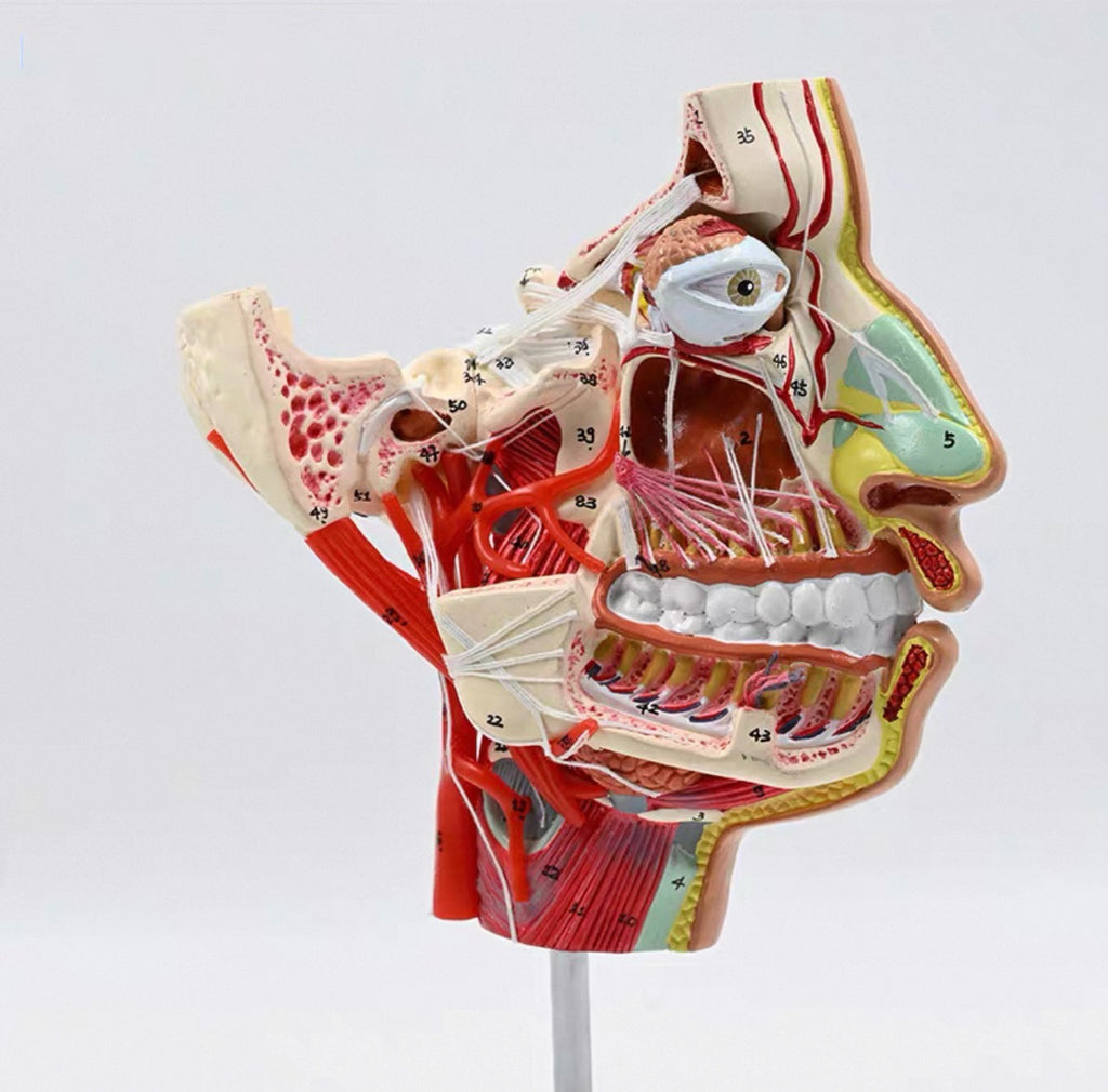 Modelo de Cabeza y Rostro Humano con Vasos sanguíneos y Nervios