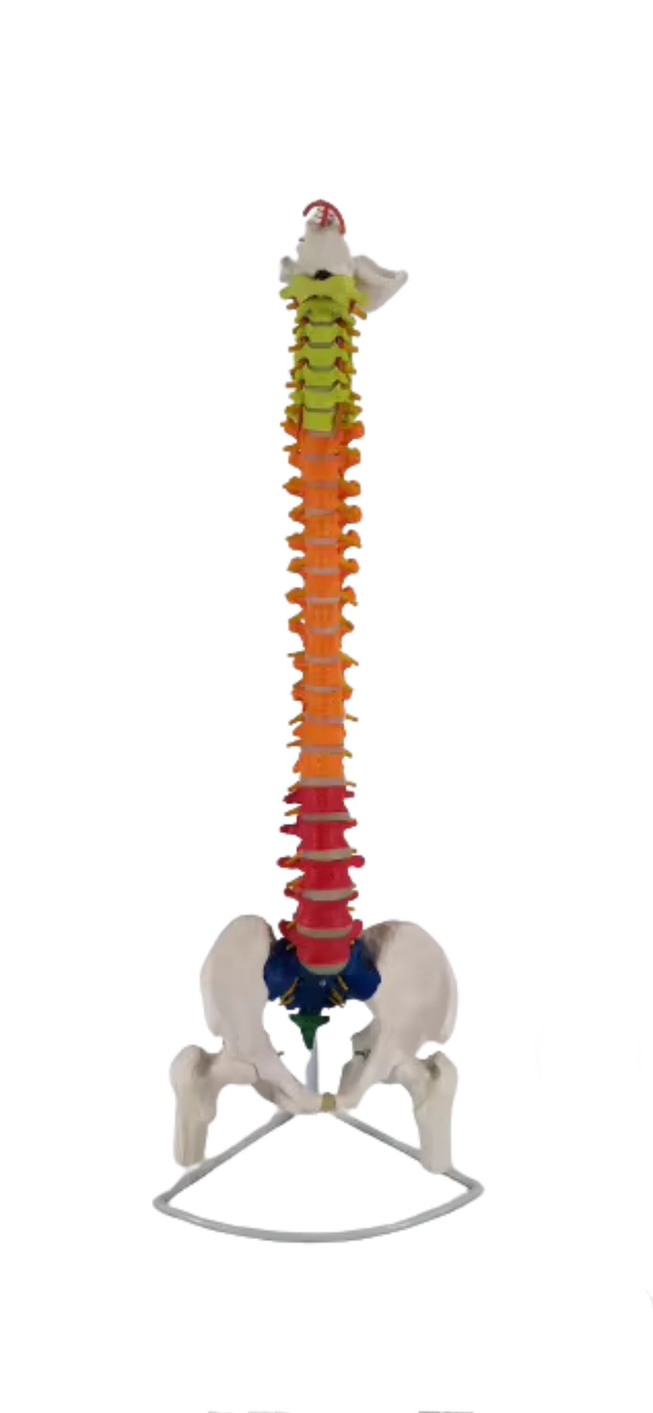 modelo de columna cervical, hueso occipital, cordal espinal y parte superior del modelo de fémur, con arteria vertebral y nervio espinal