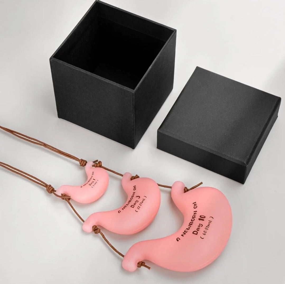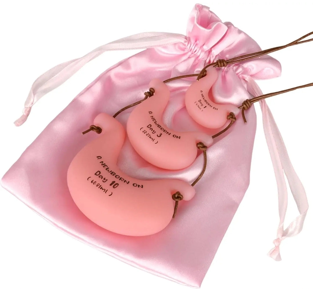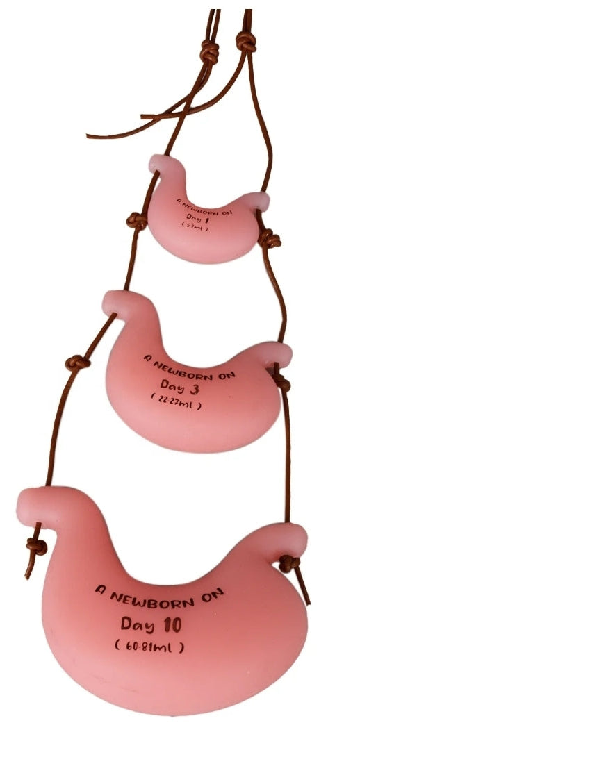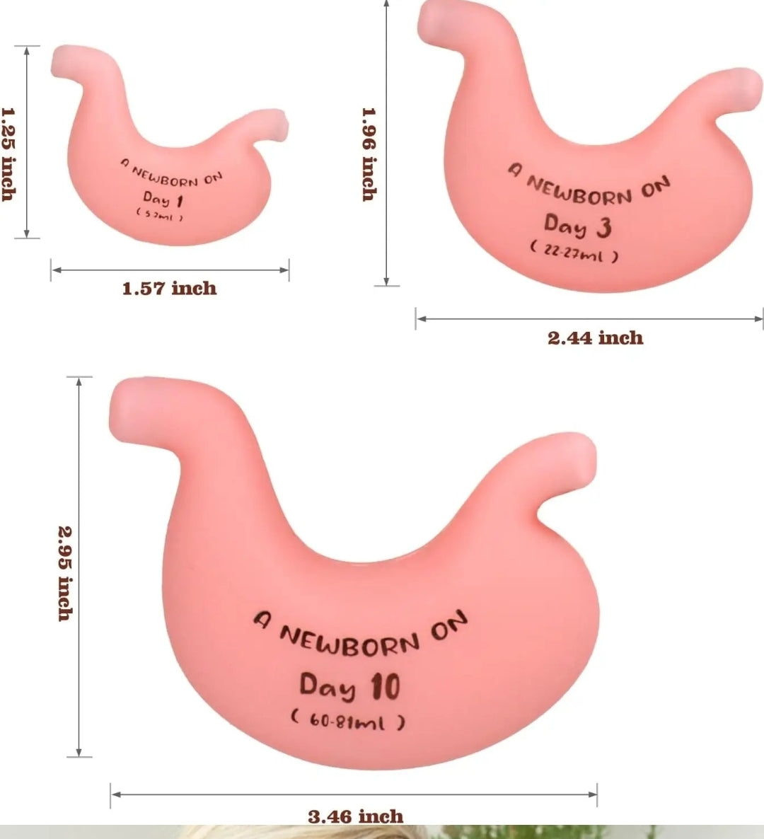- Etiqueta de collar: las abalorio de vientre para bebé vienen con una elegante etiqueta de información que describe meticulosamente las capacidades estomacales de los recién nacidos en los días 1, 3 y 10. La etiqueta proporciona a los usuarios una referencia intuitiva y clara para comprender el tamaño del estómago del bebé en diferentes etapas.