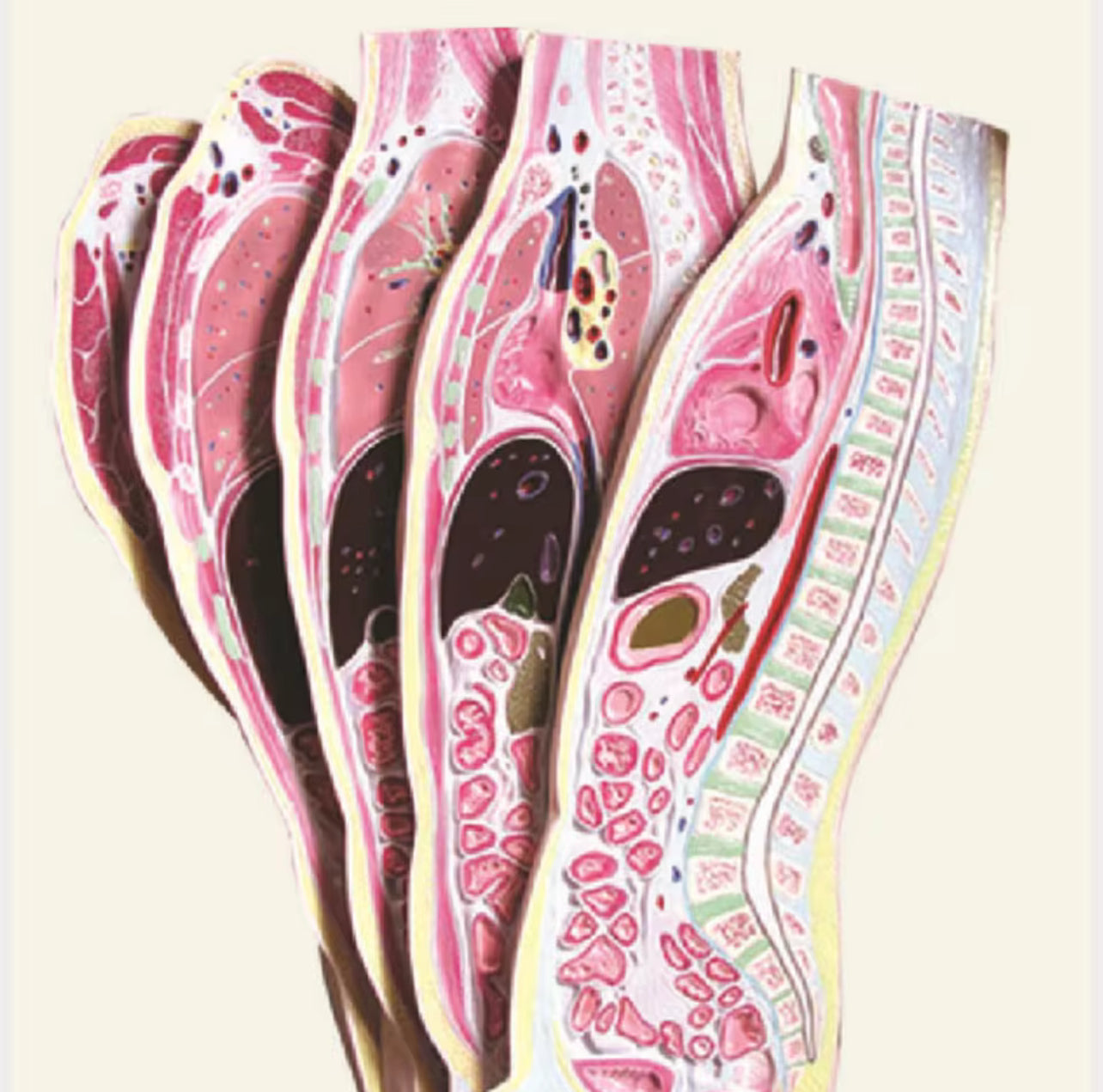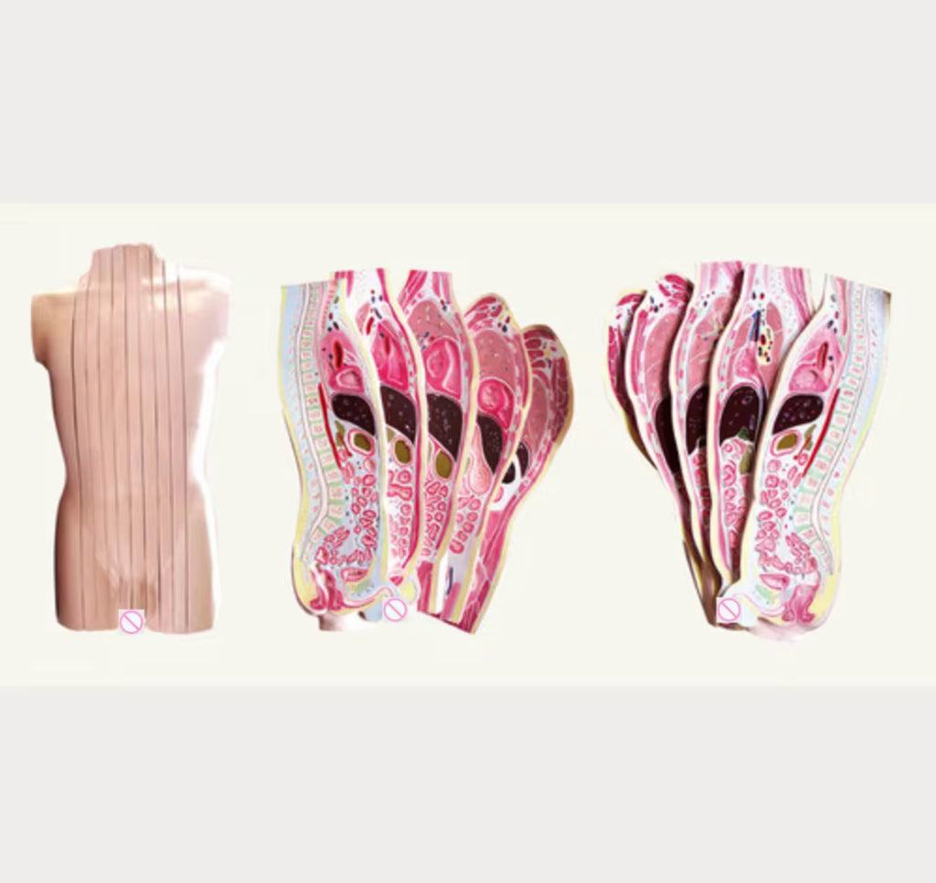 Modelo anatómico seccionado vertical, vista sagital del Torso humano, simulador de anatomía para Universidades de Medicina